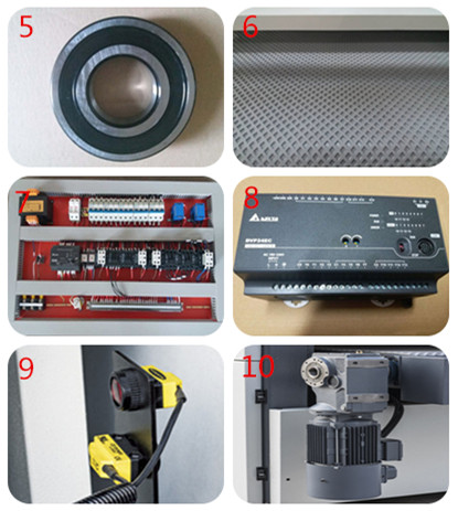 5. Equipped with up and down adjustable device, segmented press boards adjust the position and pressure of roller according to different boards, to ensure the effective guiding.