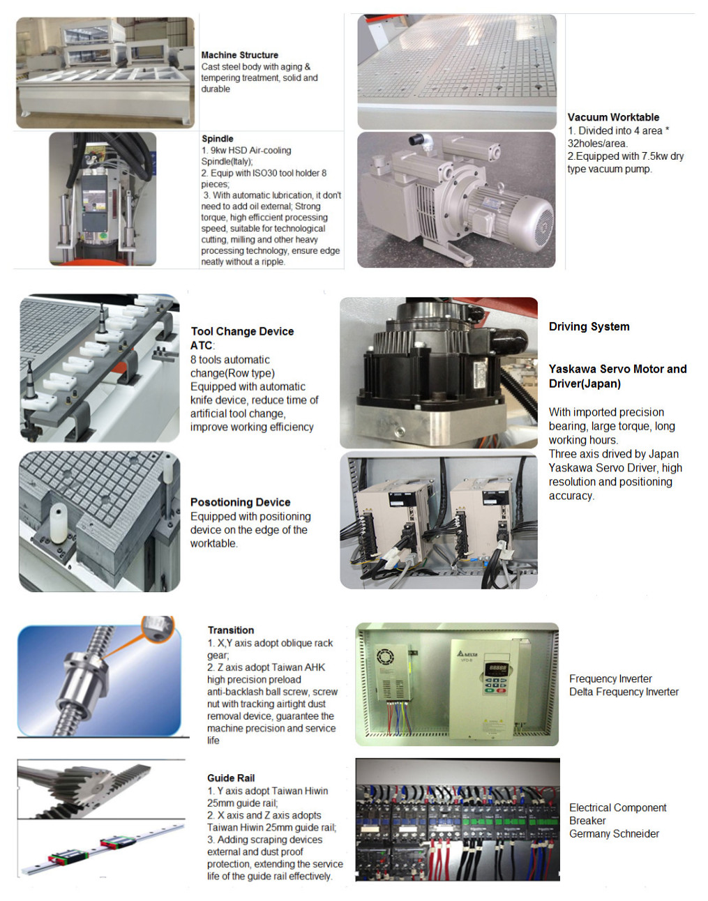 | Spindle Motor | Spindle Power | 9kw HSD Italy Spindle |