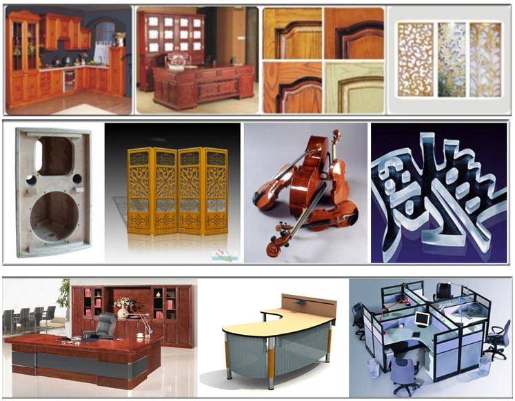 Woodworking Industry: Three-dimensional wave board processing, cabinet doors, wooden craft, non-paintdoors, screens, furniture, caraft window processing products, fan-shaped sculpture milling.