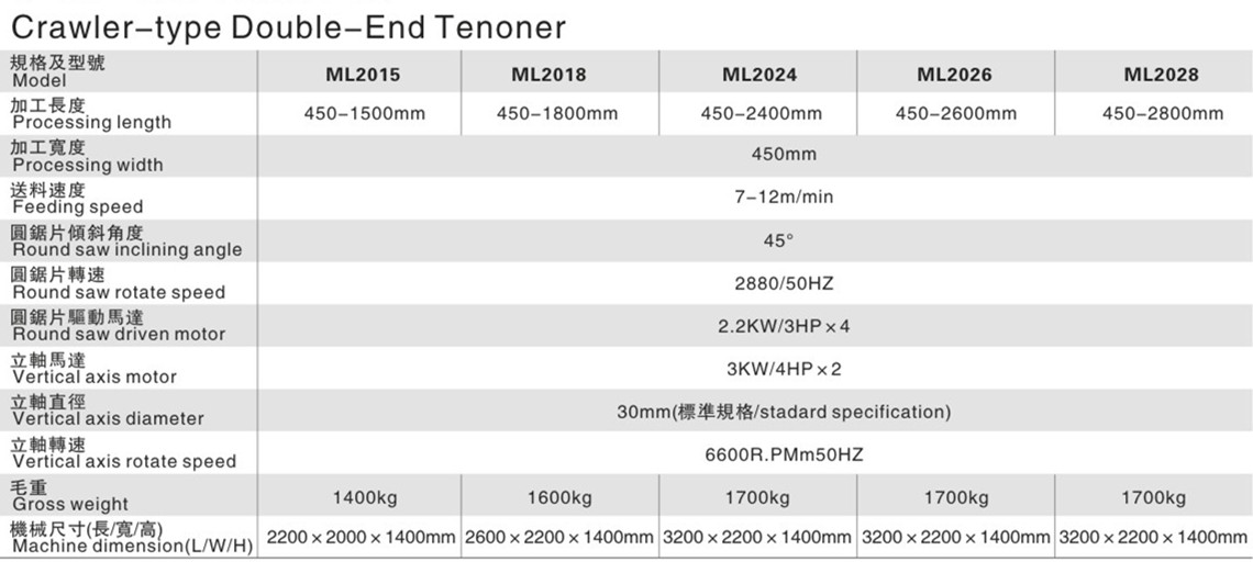 Crewer type Double End Tenoner/Saw