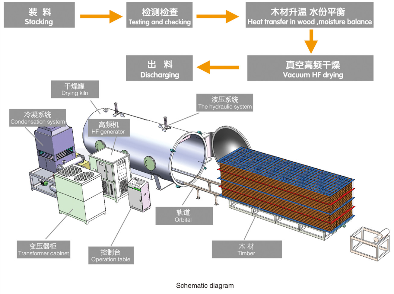 HF secado al vacío de la máquina is a relatively small and fast timber drying equipment. It adopts HF electric field as heating source, uniformly radiate to timber, directly heat moisture, speed up moisture removing by vacuum water absorption function, which is extremely suitable for solid wood and all kinds of timber processing factory, especially suitable for thick wood, hardwood, secondary drying (the first drying is incomplete and halfway),