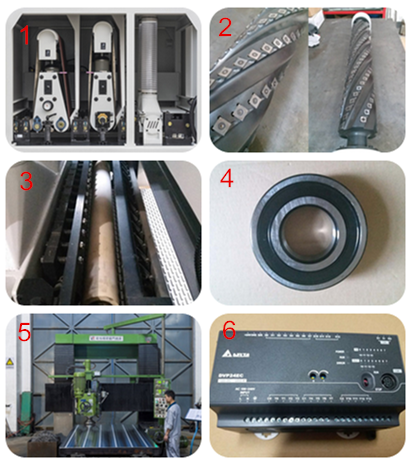 3.The planer head assembles 174pcs German carbide knives,which spiral 6 lines along the planer head.The carbide knife with small spiral angle and arc shape blade ensure the quality and efficiency.