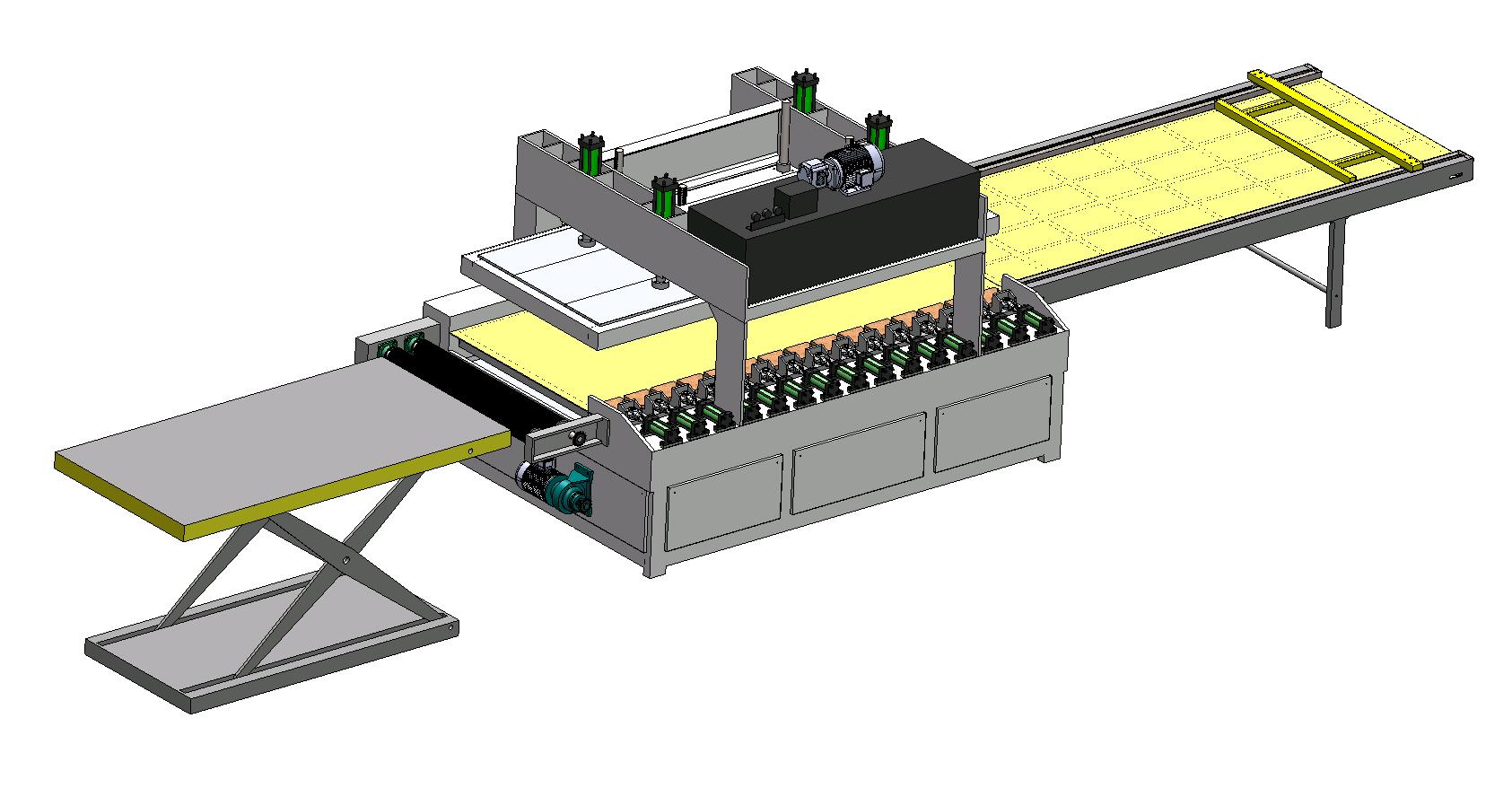 Which is suitable for gluing single surface during glue-laminated board production , the chain conveyor system adopts zigzag framework ,which greatly assure the gluing quality .