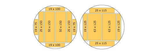 The decomposition speaks of the center yield and lateral yield depending on what part of the tribe that is sawn. Center yield comes from the tribe’s central part and is generally taken as plank with thickness from 38 to 63 mm. Only in exceptional cases is cut thicker planks. Centre exchange characterized by high proportion of core and normal knottiness. Redwood logs are used for joinery timber, such as timber windows. Whitewood logs are used it to lumber, construction timber and plank position. Side yield comes from the tribal peripheral parts and sawn into planks in thickness from 19 to 32 mm.