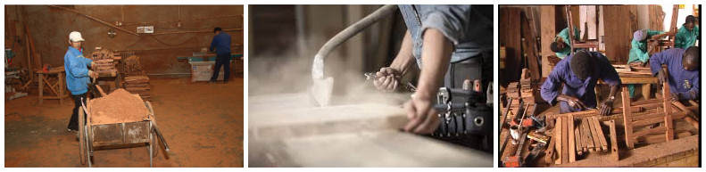 Provide dust extraction at woodworking machines (bag dust extractors which is convenient and can fit different kinds of machines , or you could set dust central dust collecting system) to capture and remove dust before it can spread.