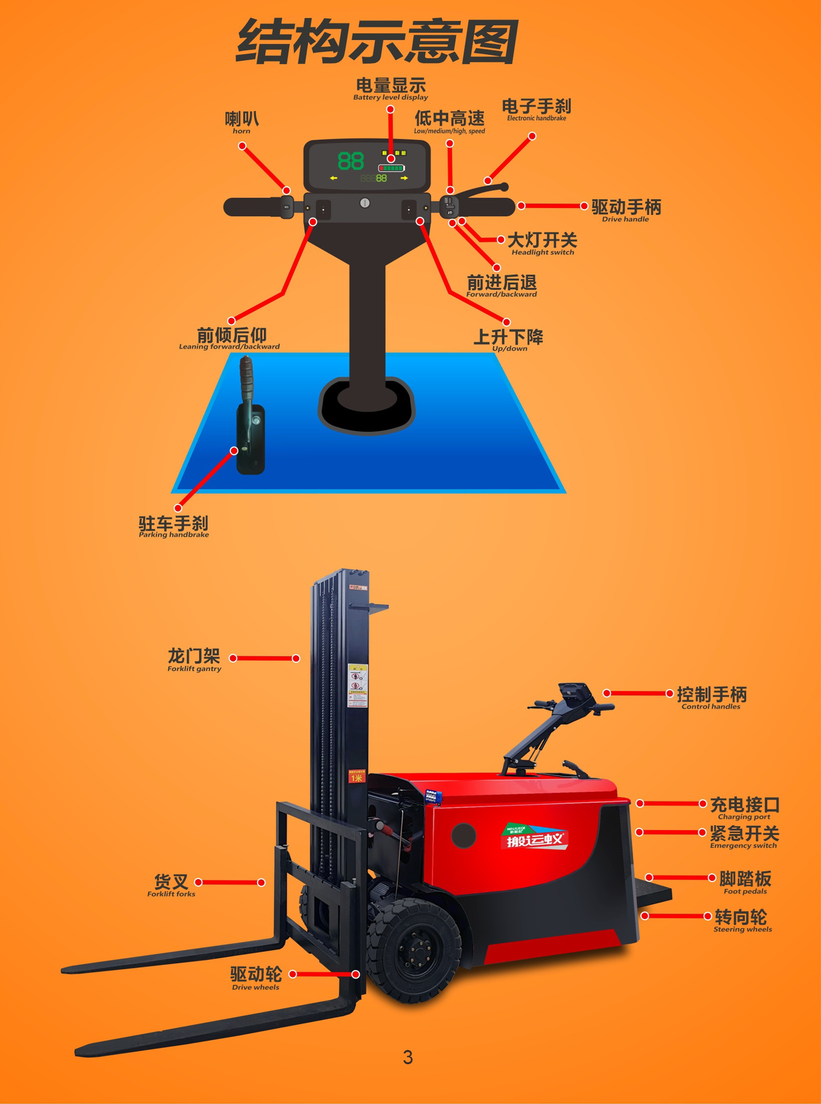 • User-Friendly Operation: With a max. lifting height of 3000mm and a fork size of 1070x100x35mm, this forklift is designed for easy operation, allowing users to navigate through tight spaces with ease.