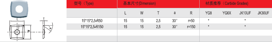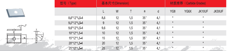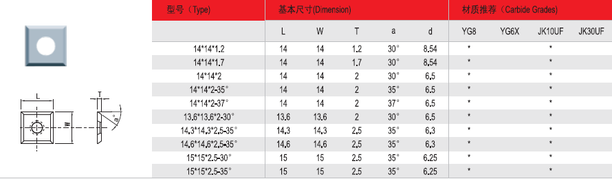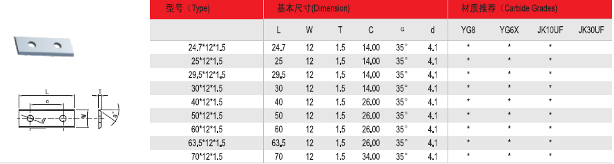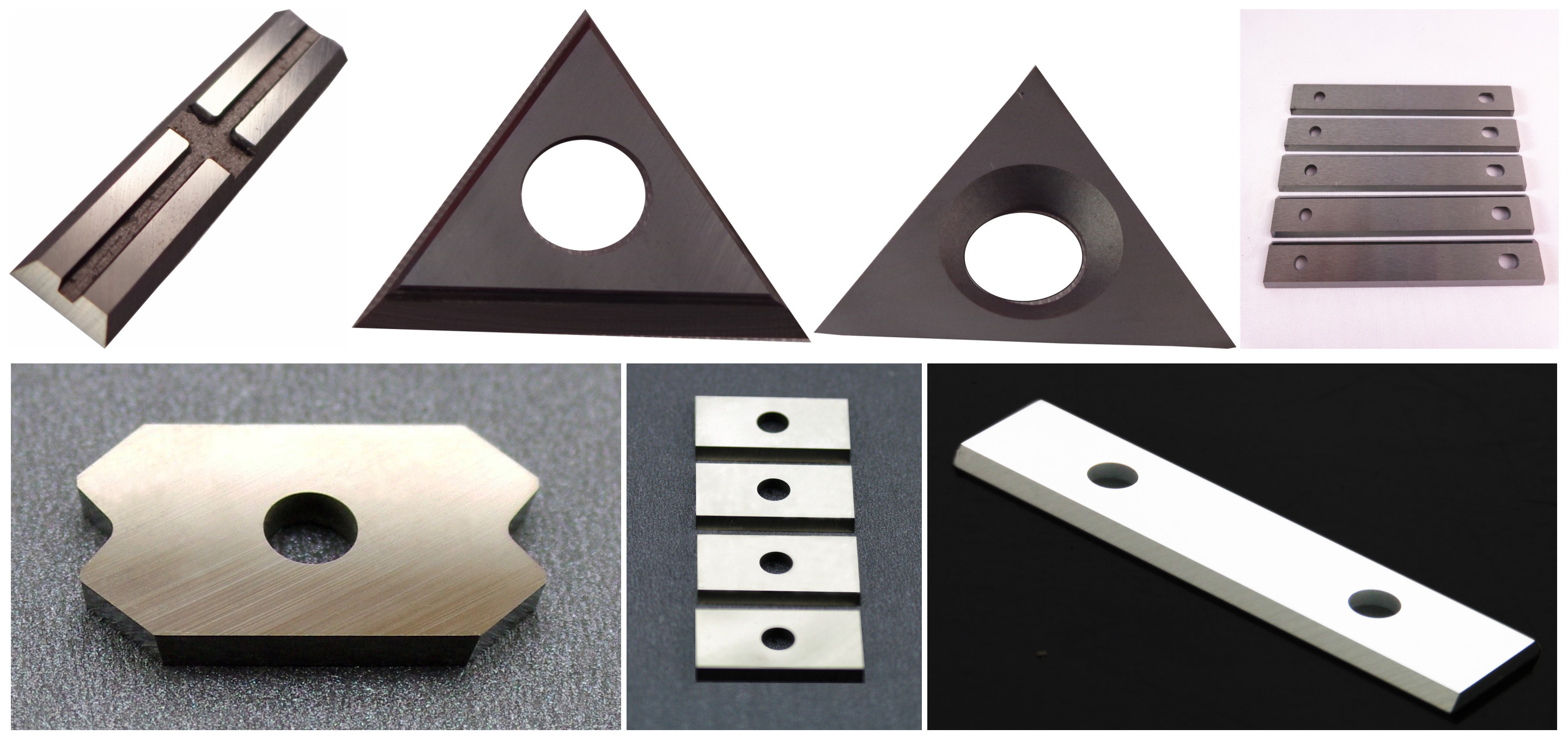 Carbide inserts (Reversible knives) are used in a type of spiral cutter head, which is designed with a true shear cut. It makes precision cutting, smaller chips and less noise than any other type of cutter heads do. If one knife edge is dull or damaged, just reverse it to another edge in seconds and the cutter head will work perfectly as new again. Replace the inserts only when four edges are dull, it can extend the working life of cutters and ensure more effective processing.